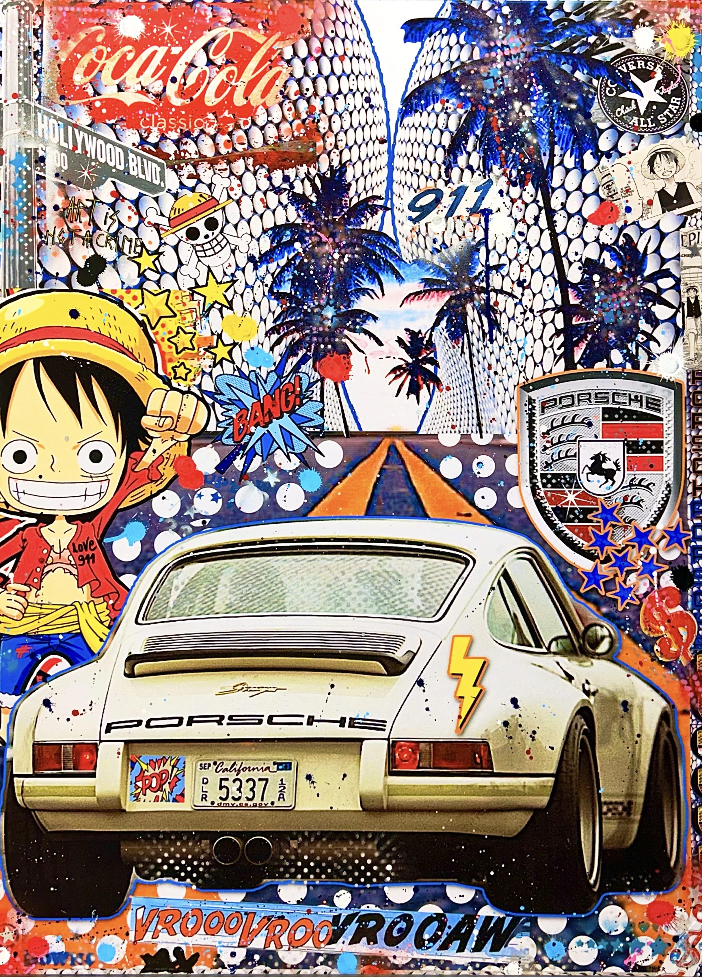 Porsche 911 et la fille au bandeau, 130x100 -Vendu